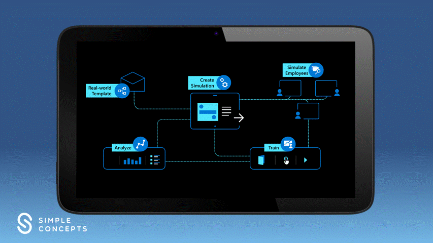 Simple Concepts crafted a detailed marchitecture graphic for Microsoft’s Attack Simulator, blending technical expertise with creative design. Elevating this further, the graphic was converted into an animated GIF, introducing a lively aspect to the presentation and effectively elucidating the Attack Simulator’s complexities.